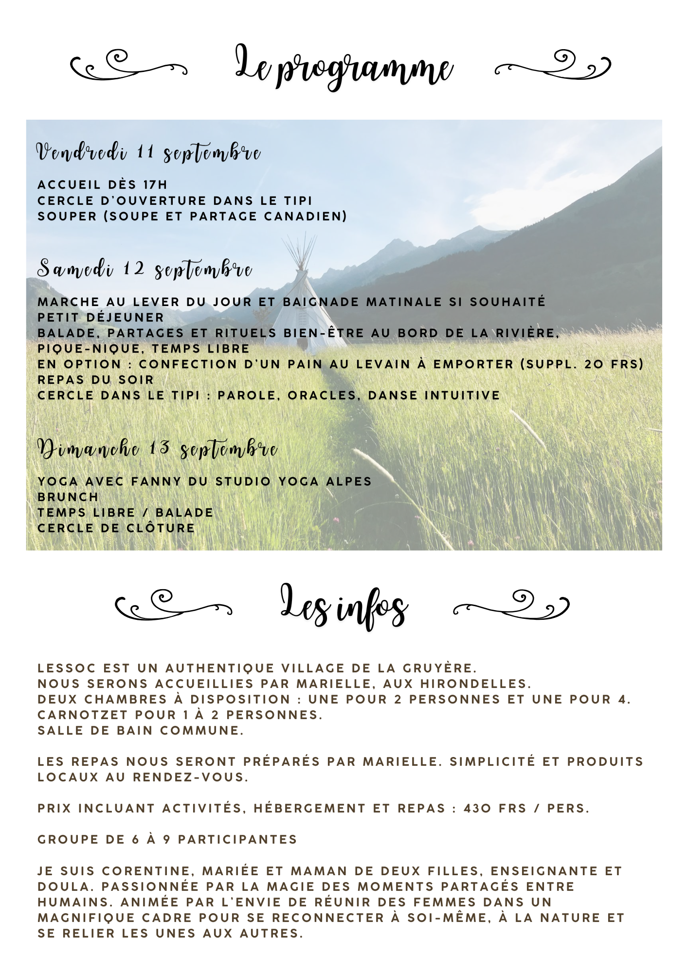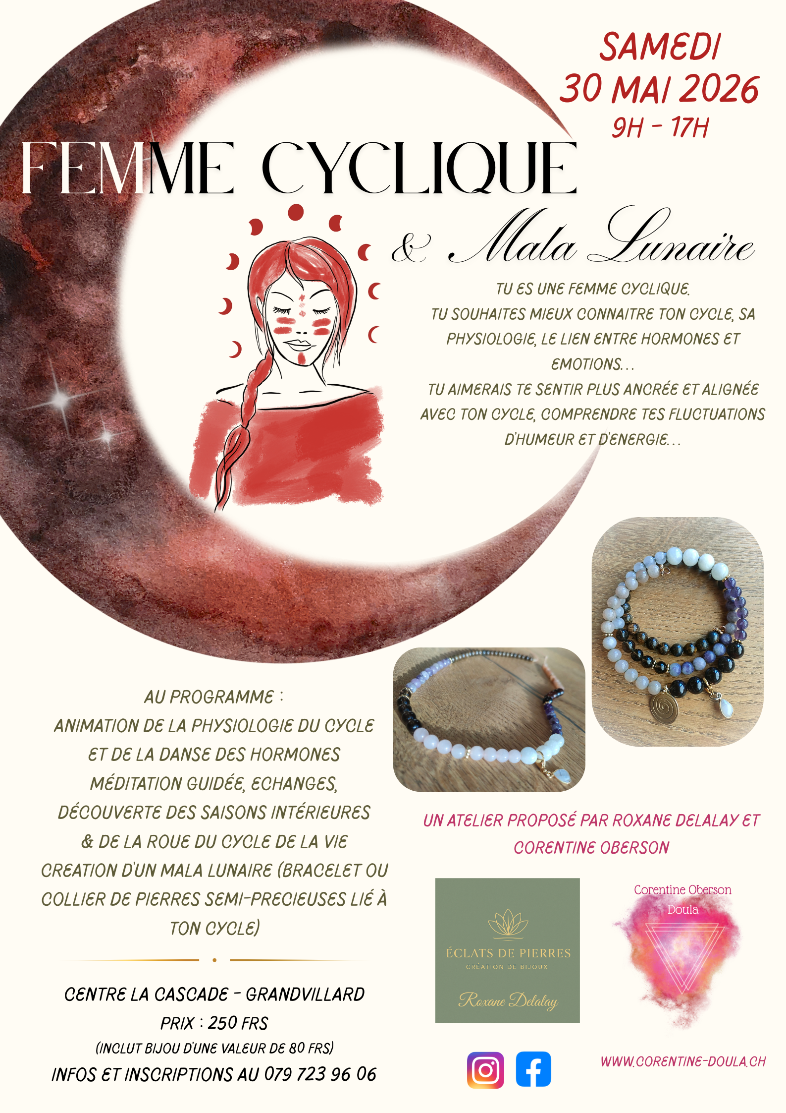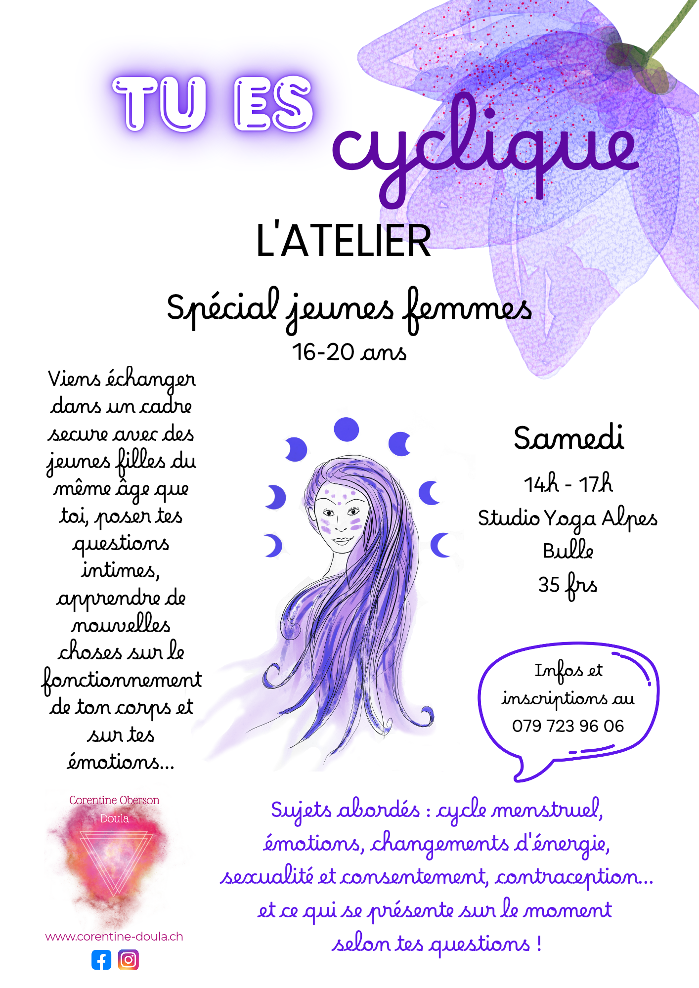 Un doux moment de partage pour comprendre son corps, accueillir ses émotions, échanger sur son vécu... Les détails se trouvent sur les affiches. N’hésitez pas à me contacter si besoin de plus d’informations.